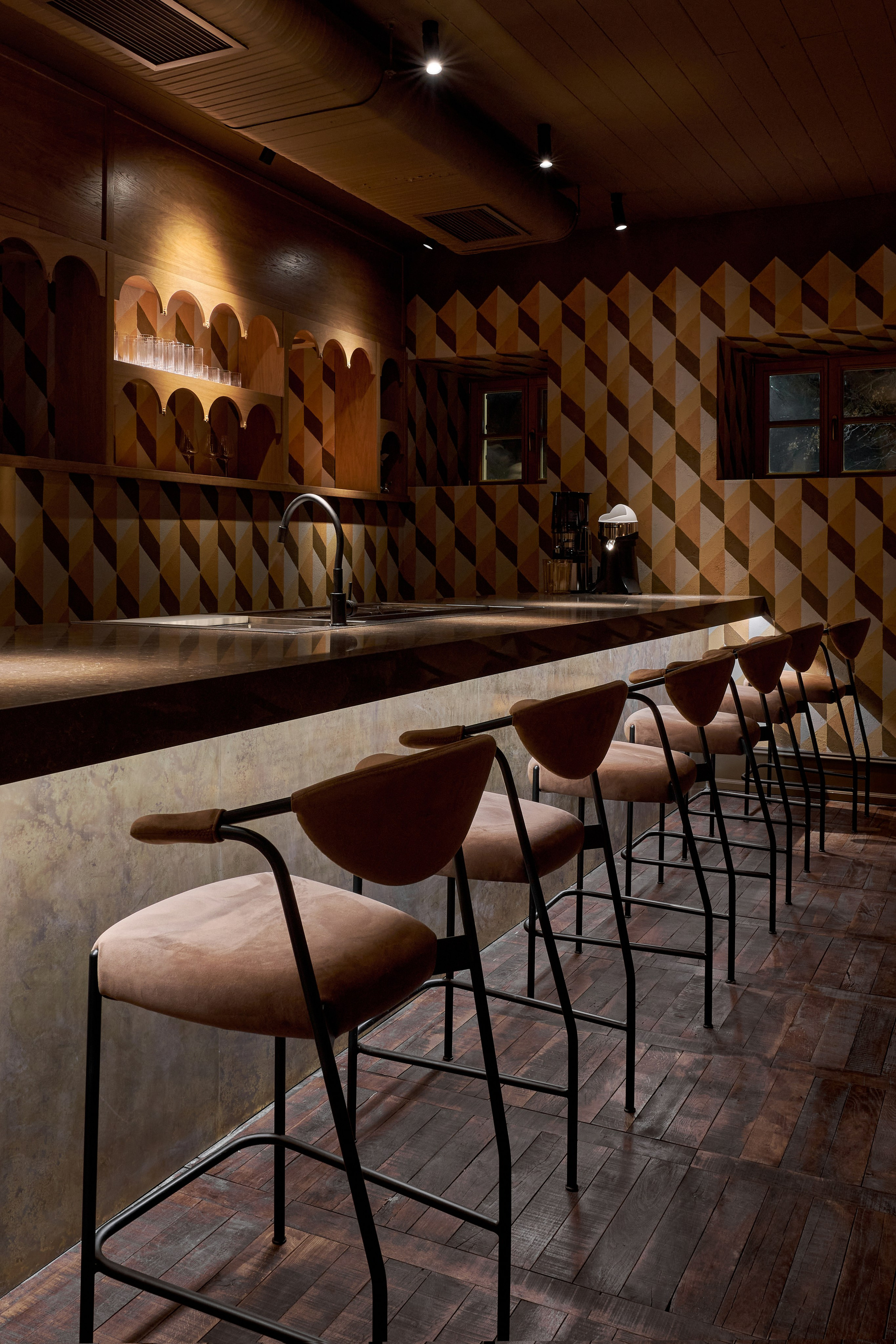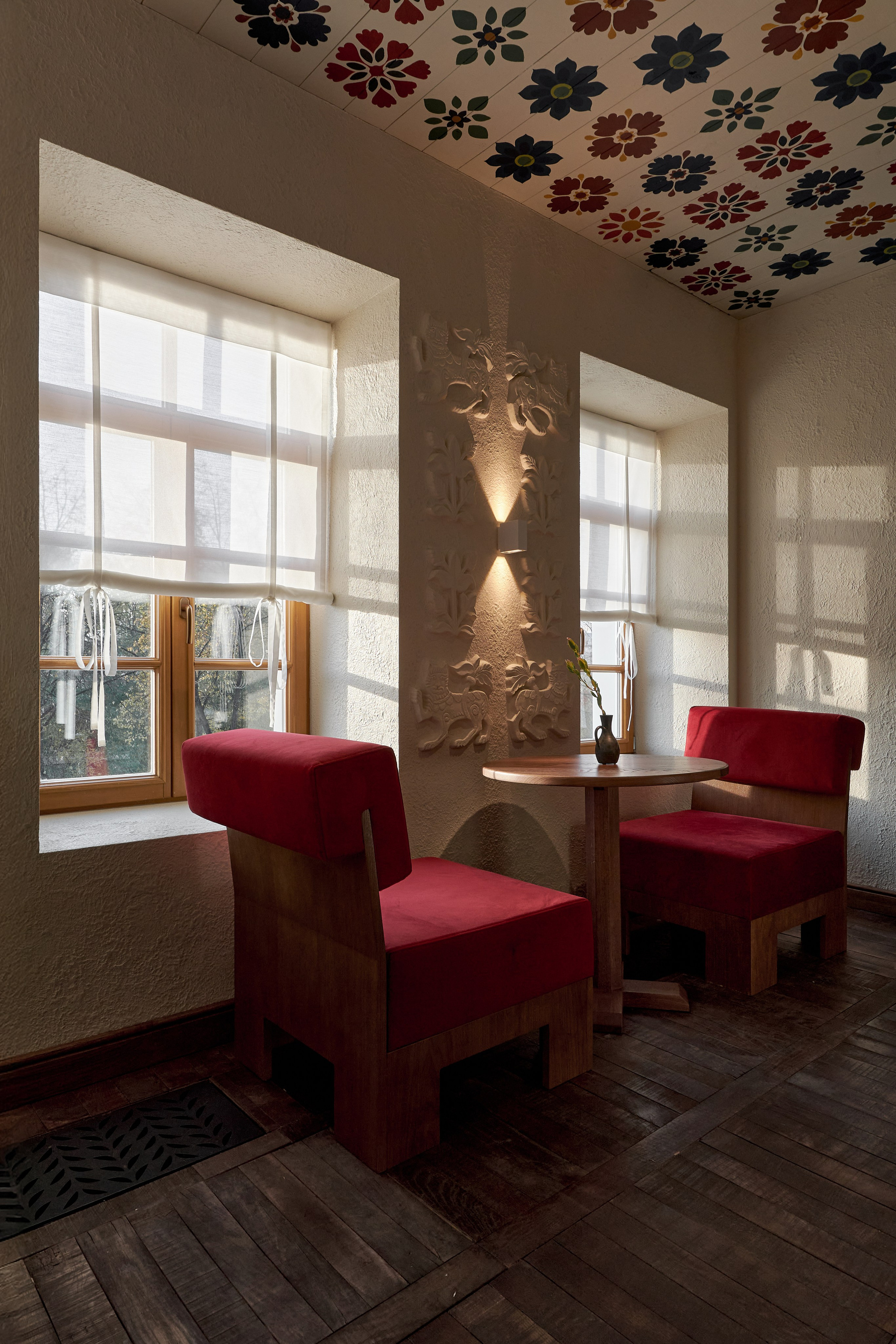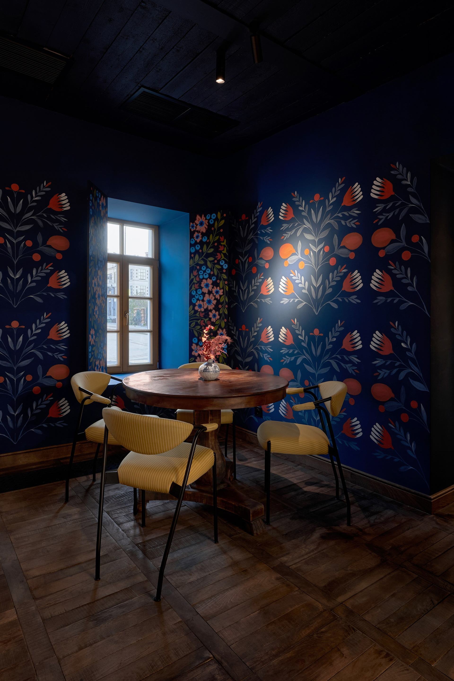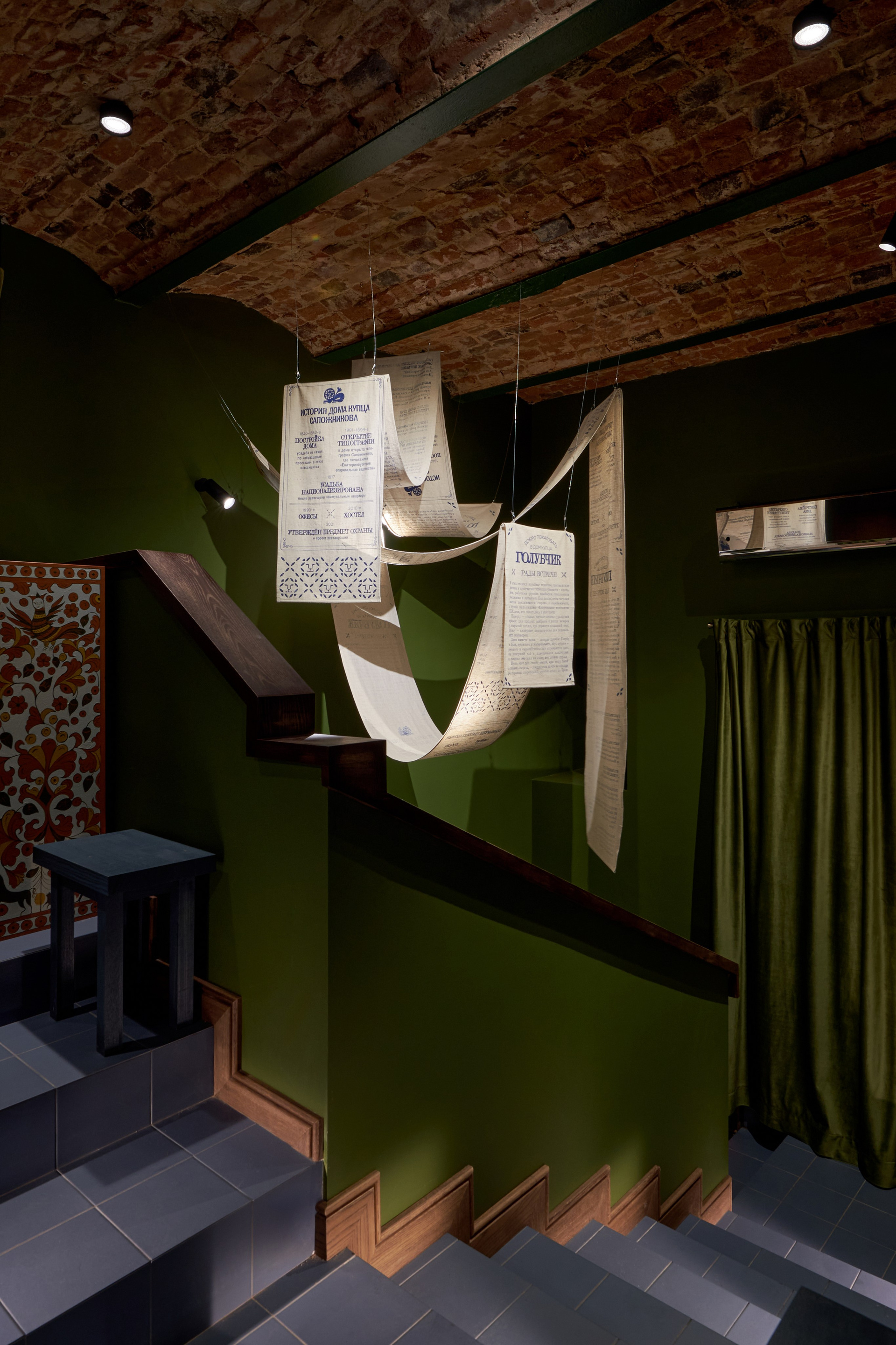 Ресторан в историческом особняке XIX века, где современная русская кухня подается в интерьере с упором на камерность и уникальность. Пространство зонировано на отдельные комнаты, что создает атмосферу частного дома и обеспечивает приватность. В оформлении использована дизайнерская мебель и детали, созданные специально для этого проекта или привезенные из поездок по России. Сочетание исторического контекста, кастомных элементов декора и актуального прочтения локальных продуктов формирует по-особенному уютное пространство.